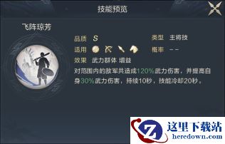 效果::对范围内的敌军共造成120%武力伤害,井提高自身30%武力伤害,持续10秒,技能冷却20秒。
