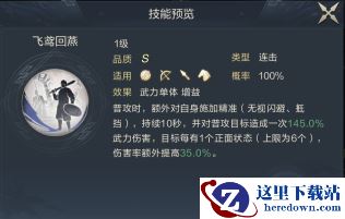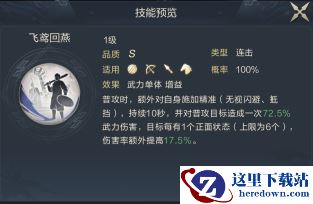 满级效果:普攻时,额外对自身施加精准(无视闪避、托挡),持续10秒,井对普攻日标造成一次145.0%武力伤害,目标每有1个正面状态(上限为6个),伤害率额外提高35.0%。
