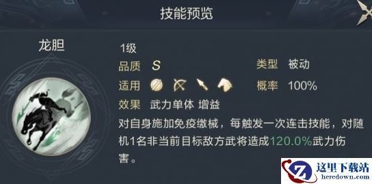 二是稳定输出,连击需要普攻触发,而缴械可让目标无法普攻,没有主动技能的情况下,目标在缴械时间内基本丧失输出能力,龙胆可让赵云全程免疫缴械。