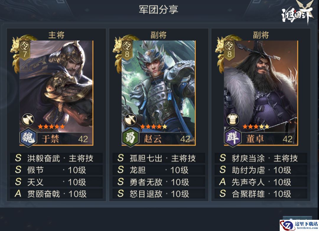 这么搭配除了让输出点更稳定以外还有一个好处,目前阵容搭配大部分有2个核心武将,本阵容通过让赵云和于禁并列可快速击杀处于前排的核心角色,以此在后续的战斗中大大降低敌方战斗能力。即使队伍遇到1拖2的军团,也可快速破敌直取主将,另一武将则完全交由董卓去限制。这也是此套阵容的核心打法思路,“先秒一个,其他再说”。