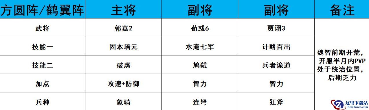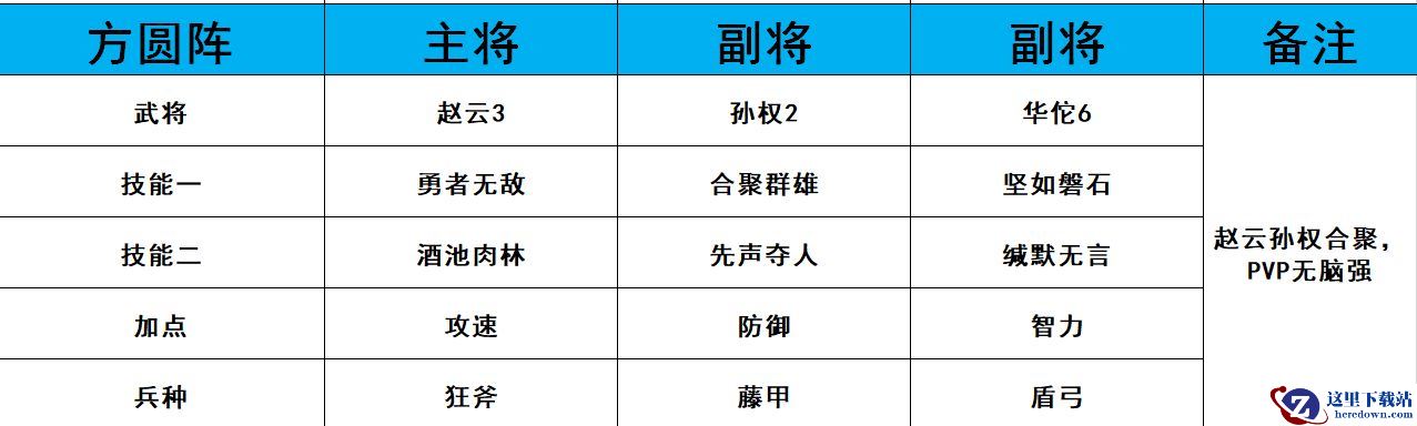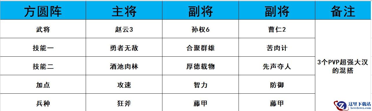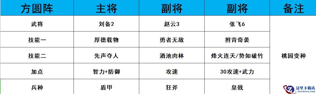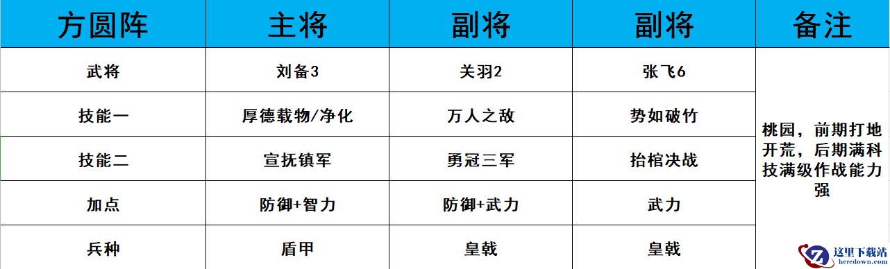 这个阵容用来开荒打地战损非常的厉害,前期的PVP能力比较中等,但是满级满科技之后是非常的厉害的,尤其是刘备,他的25%的加成是非常的可怕的。