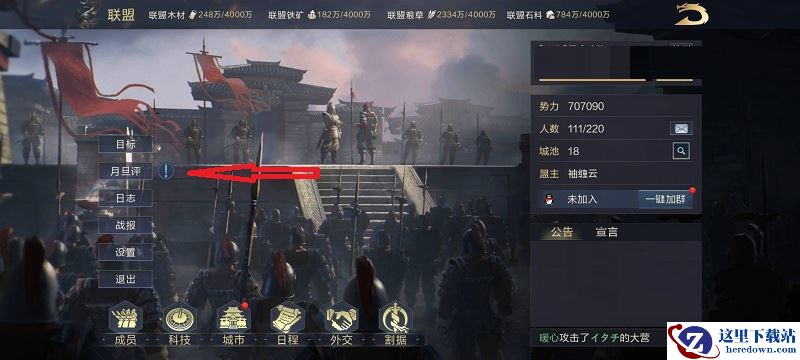 玩家进入联盟,就可以看到月旦评,但是月旦评只有盟主才能开启,所以玩家需要和自己的联盟联系才能回答问题。