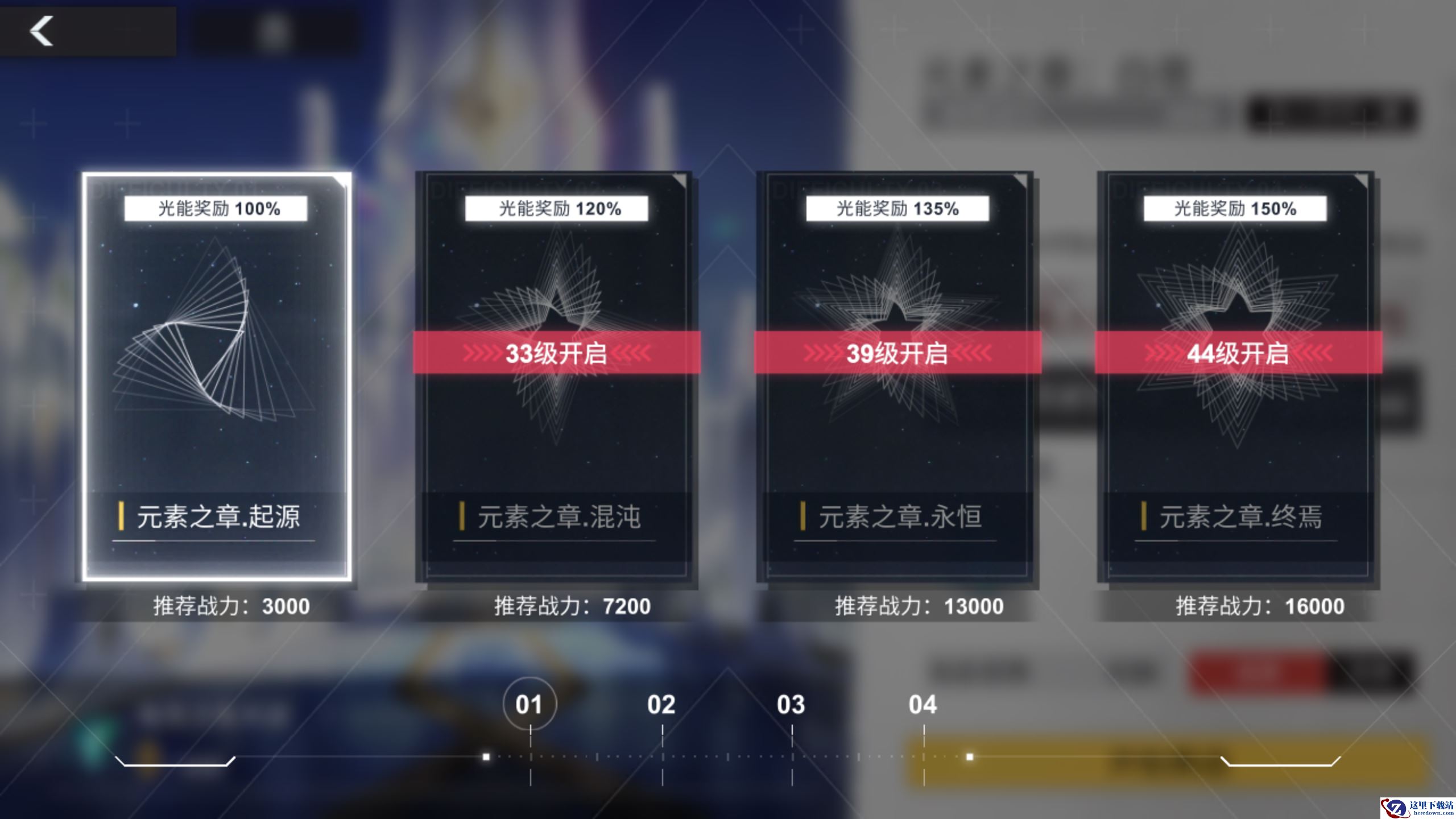 乌洛波洛斯分为四个等级,达到等级条件解锁下一个难度,更高的难度会有更高的光能加成。