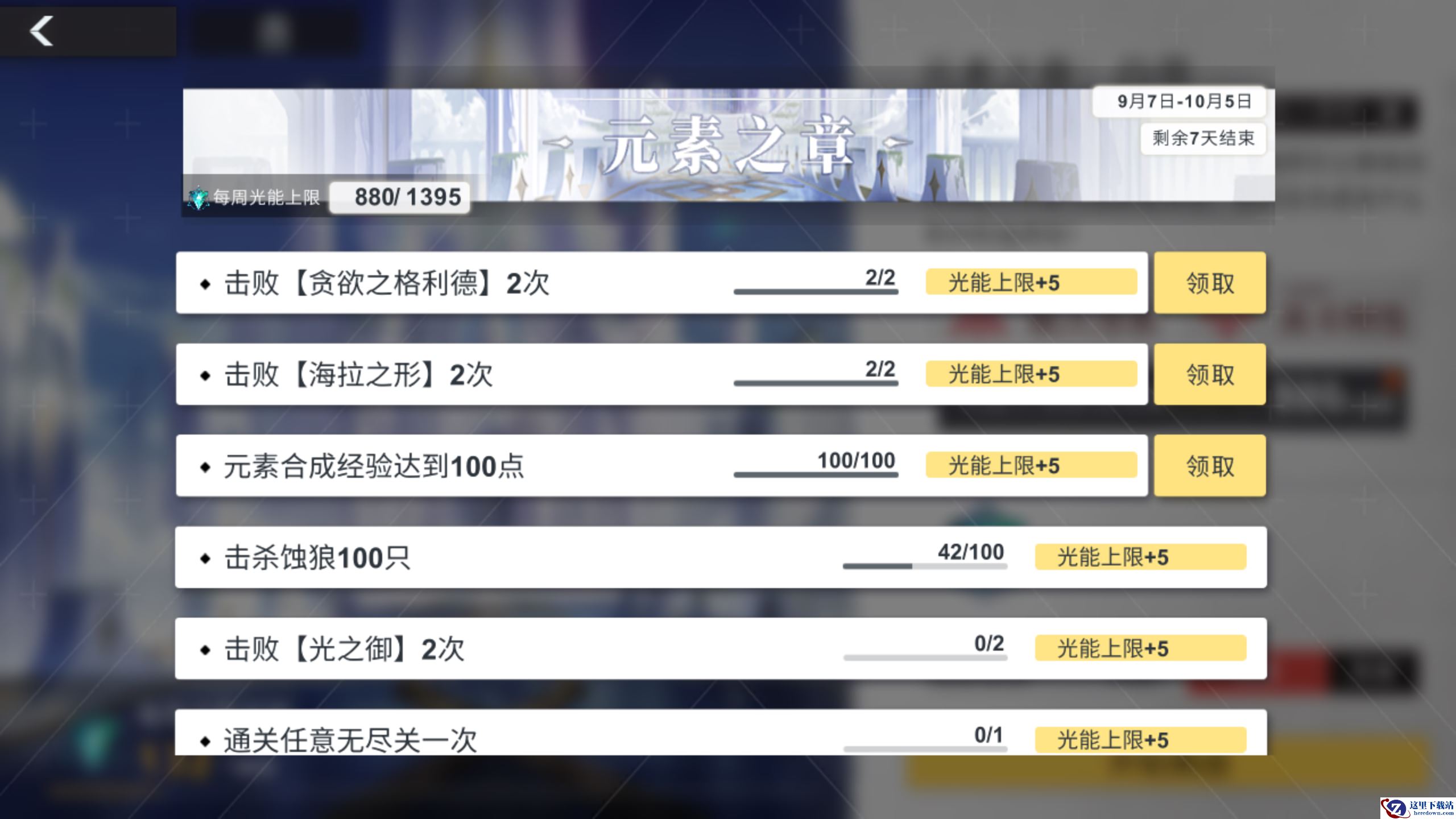 副本结束后解神者们可以看到光辉奖励,同时不要忘记领取进度任务中的光辉奖励哦!