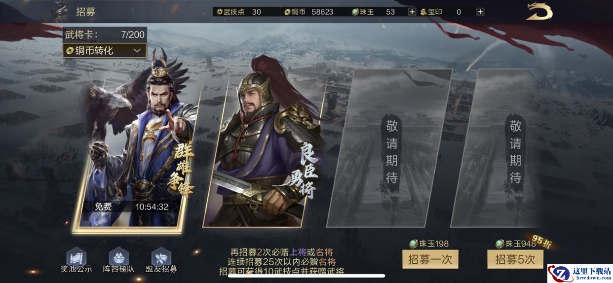 最后,我喜欢这类游戏的原因就是抽卡了,因为抽卡让我快乐,每一次抽到橙卡武将都会让我耐心研究他们的阵容搭配,而《鸿图之下》关于武将抽卡保底25次的设定,让我很开心,毕竟对比另外两款游戏来说,真的很良心。