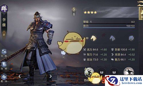 李傕在鸿图之下手游中是一个来自群雄的四星武将,李傕属于一个前排类武将,技能提升自己的四个属性,增加了李傕的坦度和输出能力,下面小编给大家带来《鸿图之下》李傕技能属性攻略,感兴趣的小伙伴一起来看看吧,看看李傕到底值不值得培养。