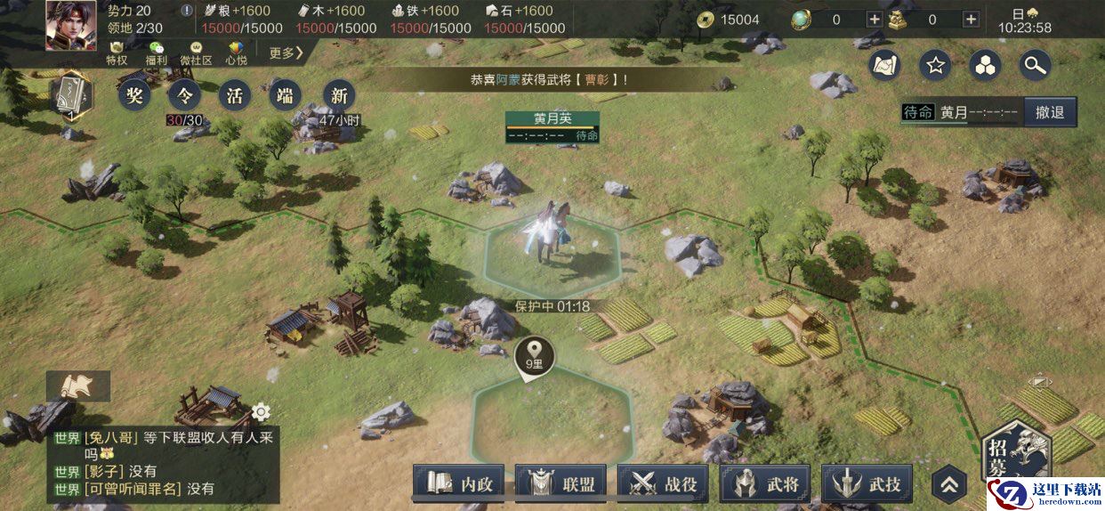 通过新手教程后,我发现游戏中不是只有三国英雄这么简单,还有主公也能征战,也就是我自己也是可以进行培养和上场战斗的,这就有了一种参与感,因为相对于别的游戏只能操控三国武将,而主公永远是那个坐在城池内提升官职,却不出战的那个,如果我的主公也是这样,那我早就另择明主了吧。