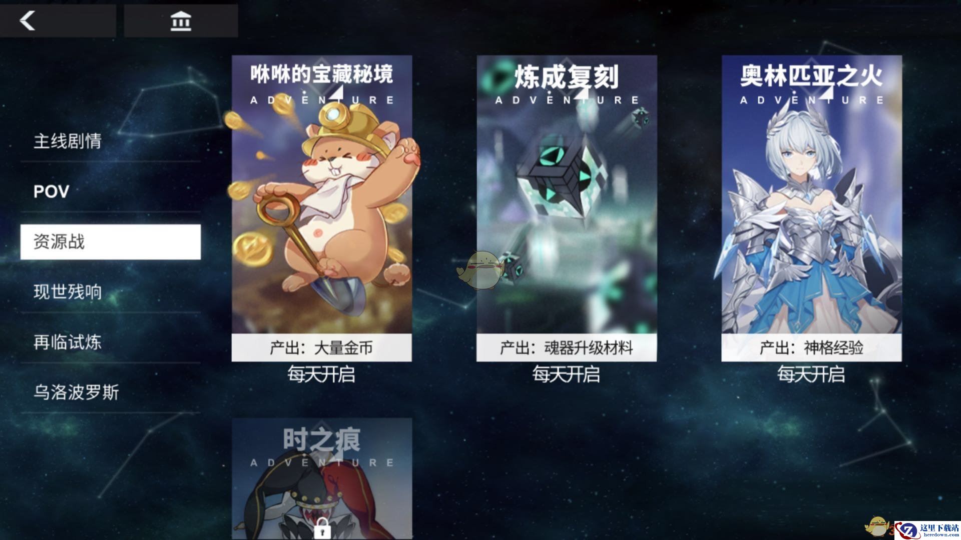 4、这里建议玩家刷咻咻的宝藏秘境和时之痕的第一关。