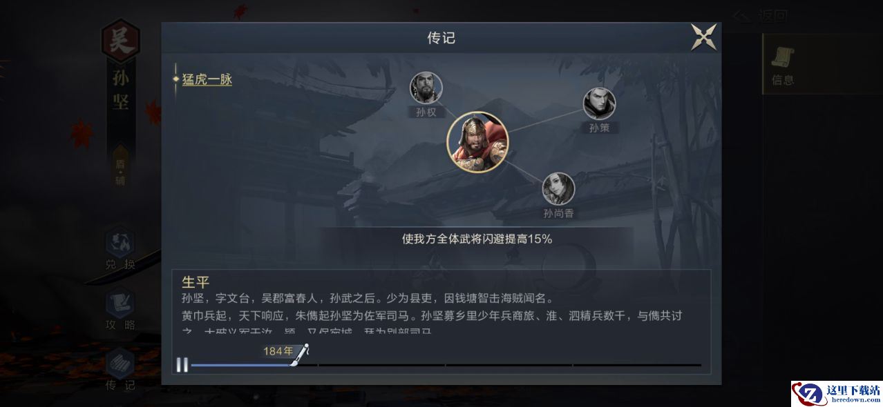 因为孙坚是三孙的肉盾,搭配是孙权+孙坚+孙尚香,孙坚的东吴羁绊“猛虎一脉”有闪避加成,加上1技能的闪避加成,在满级的情况下闪避高达50%以上,这个数值令人发指,更不要说让孙坚的主将技可以提升自身防御力100点,这个靠谱的坦克是撑起闪避的关键。,也是高爆发阵容搭配的克星,你输出越高越死的不明不白。