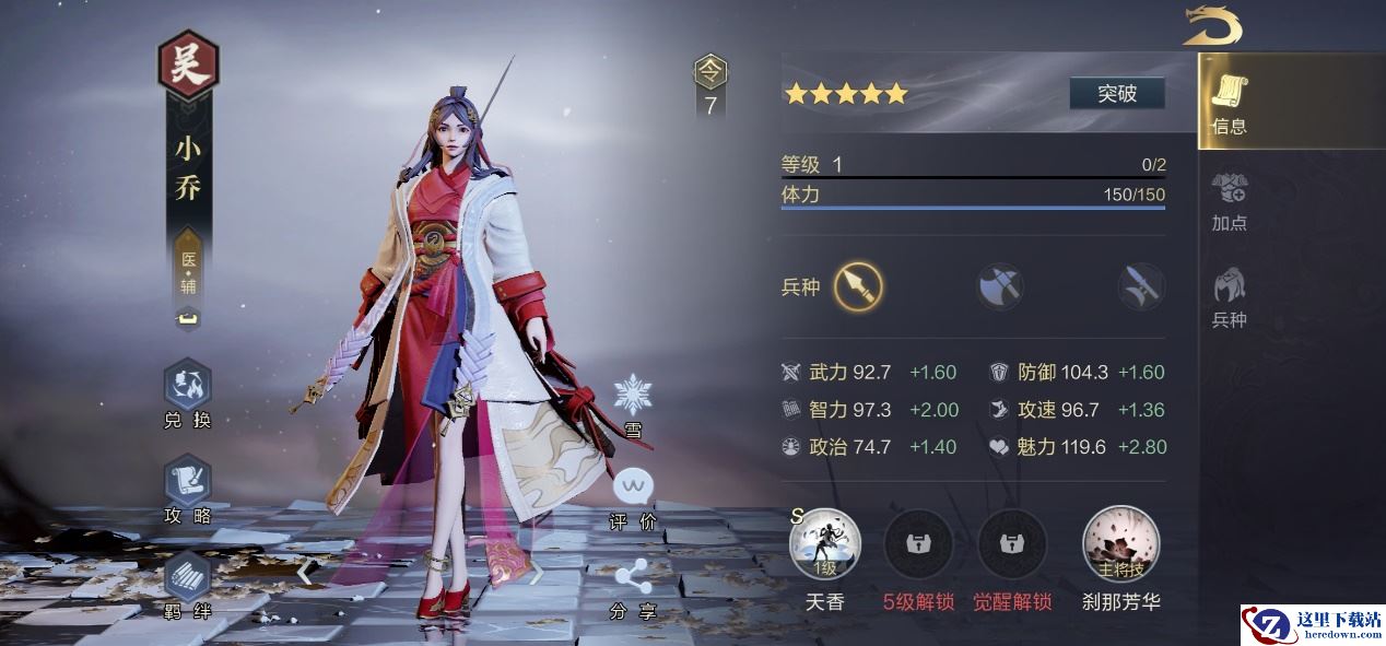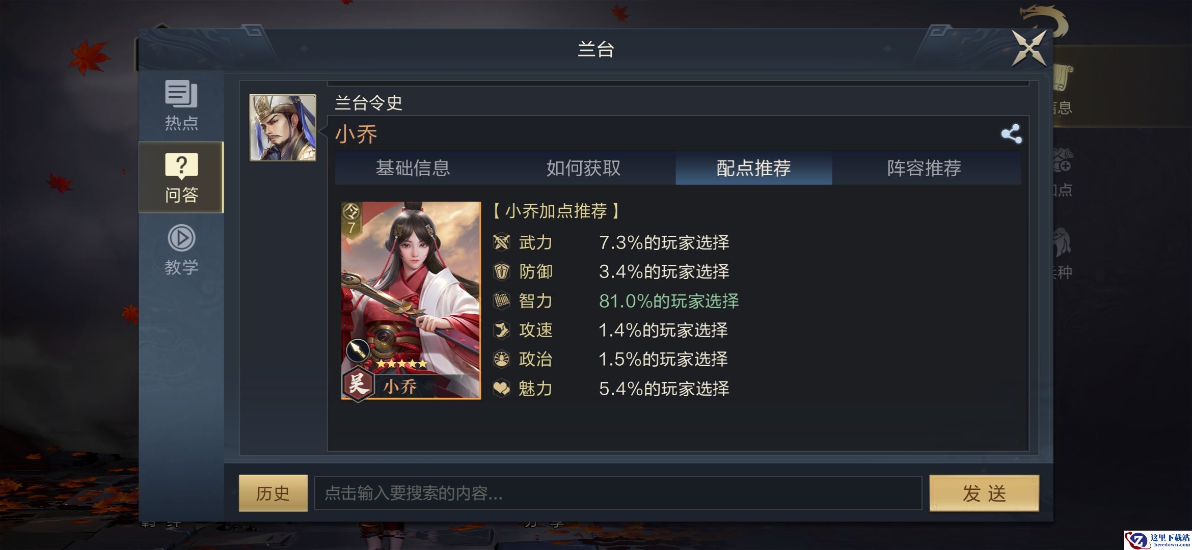 小乔的武力与智力相差无几,但作为双属性都比较不错的代价,却是小乔即使是五星武将,但属性反而低于其他五星武将,太过平均反而拖累了上限,其实如果是这样问题也不大,小乔均衡的属性也可以在队伍中作为副将登场,而且本身的定位就是辅助,给其他强势的武将打下手也是不错的选择,定位与属性契合度还是不错。