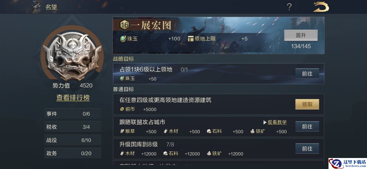 赛季任务获取资源是有时效性的,不同阶段的赛季任务可获得奖励不同,其中比较关键就是前期第二阶段的石料任务,一次可获得2万多石料,这前期开荒的强心剂,而其他赛季任务也有粮草、预备役等等奖励,虽然不全是建造资源,但都是非常刚需的东西。