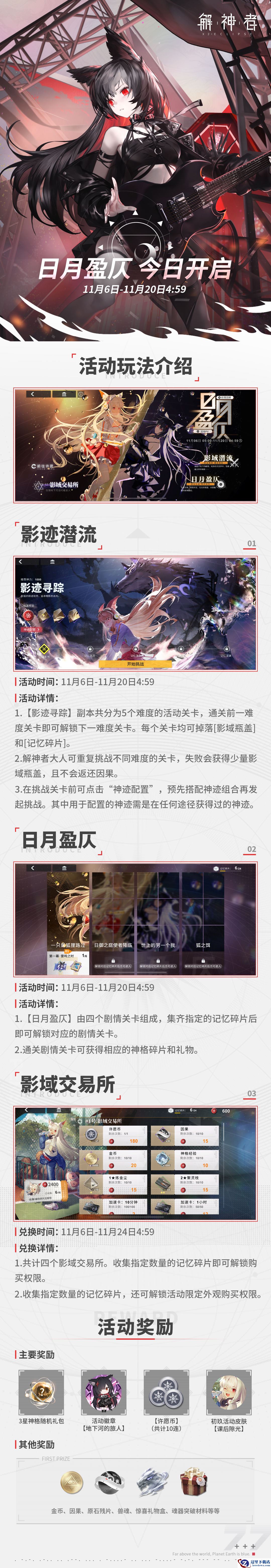 《解神者:X2》在今日11.6日开启了最新的活动日月交替 昼夜共生|「日月盈仄」活动今日开启!活动不仅送了超多的福利,还给与了玩家们新的神格和新的玩法模式哦,一起来看看吧。