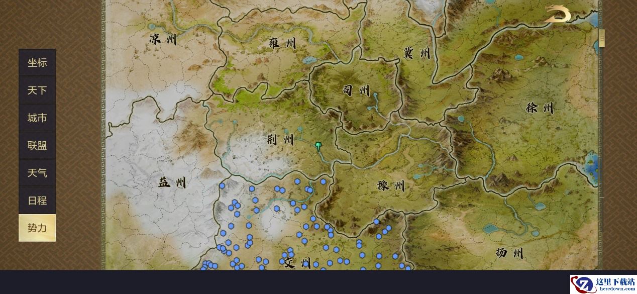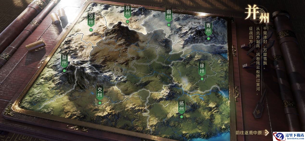 《鸿图之下》几乎照搬了三国的全部地貌,并将之细化分布,其中玩家可以选择八个州作为自己的起点,每一个州还有一段批语,概述其地势地貌,比如交州的批语是“水起沧澜,岭南巅。提三尺剑,扫蛮荒!”。三国时期最南部的交州就是一处偏远蛮荒的区域,后续才被吴国孙权吞并收复。