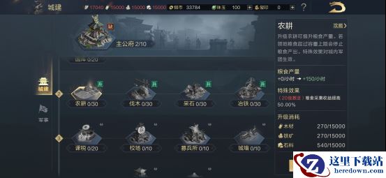 游戏的本质其是鼓励玩家积极对外扩张的,这也和大部分玩家的战略目标吻合。但是《鸿图之下》中也包含了一些自我发展(种田)的方法,也是考虑到我这样扩张欲望并不是特别强烈的玩家。例如在地块上的采集和练将,还有通过图纸对资源地块的提升,以及城建中对资源建筑的升级,让我在实力不济的情况下也不用完全停滞发展。简单的种田机制让我在杀伐之余,多了一些悠然自得的轻松玩法。