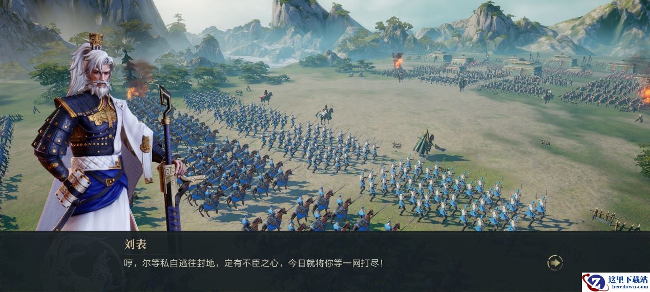 然后随着关二哥和黄月英来进行新手教程,第一战就是抵抗刘表的追击,关羽作为主将拥有主将技,伤害极高,并且以两名将领同时面对敌方一名,可以让我轻松地直讨敌将,在这里说个小Tips,之后的战斗可以先派炮灰去侦查敌人的站位,然后用主力去讨伐,并且用和新手教程一样的策略,两名将领去针对敌方主将,这种行为通常被玩家称作为“爆头”。