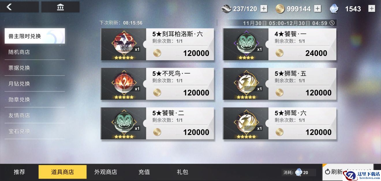 【白夜补给】道具商店将限时开放兽主兑换商店,想要提升兽主实力的解神者大人不要错过啦!