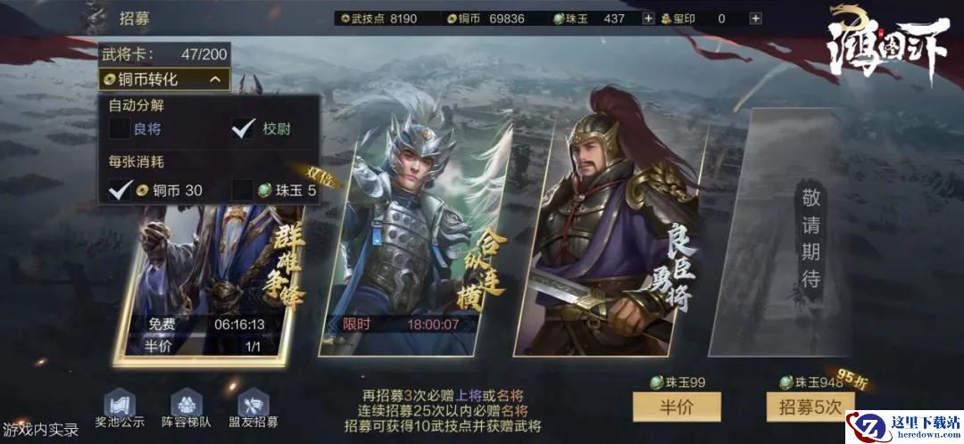 除了常驻卡池【群雄争锋】和【良臣勇将】,游戏中还会伴随着每个服务器里玩家们的发展进度解锁限时卡池。