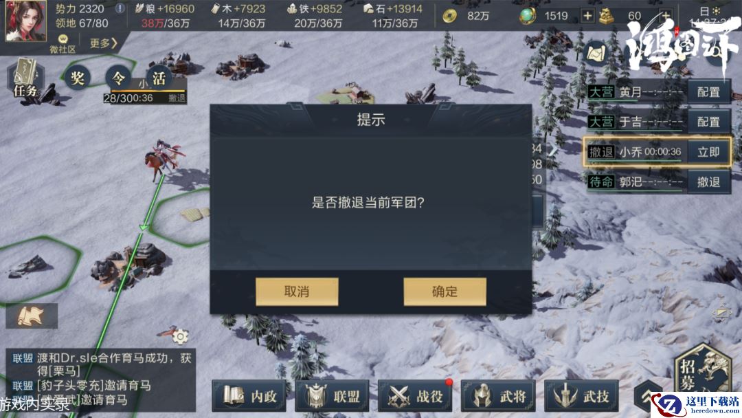 武将回营也是消耗珠玉的一大主力,小伙伴们在外攻城略地的时候,如果能迅速回营补兵,就能更快的攻占周围地格,方便占领资源,铺路进攻,或与联盟其他玩家守望相助,共谋鸿图大计!