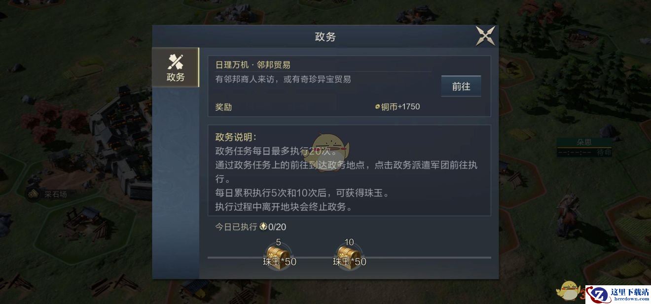 2、完成政务任务即可获取对应的奖励,每日完成一定数量还可以领取珠玉奖励。