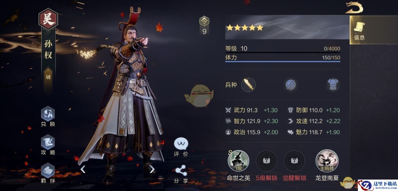 作为三皇之一,一直凭借着命世之英的增伤减伤效果成为了万金油武将,无论是组羁绊队伍还是混搭其他队伍都可以算是一线水平,因为孙权的命世之英buff提升过于高了,虽然可以被驱散,但鸿图之下本来就是buff满天飞,一时的驱散根本也起不了太大作用,所以孙权绝对是第一核心,任何队伍都可以搭配。