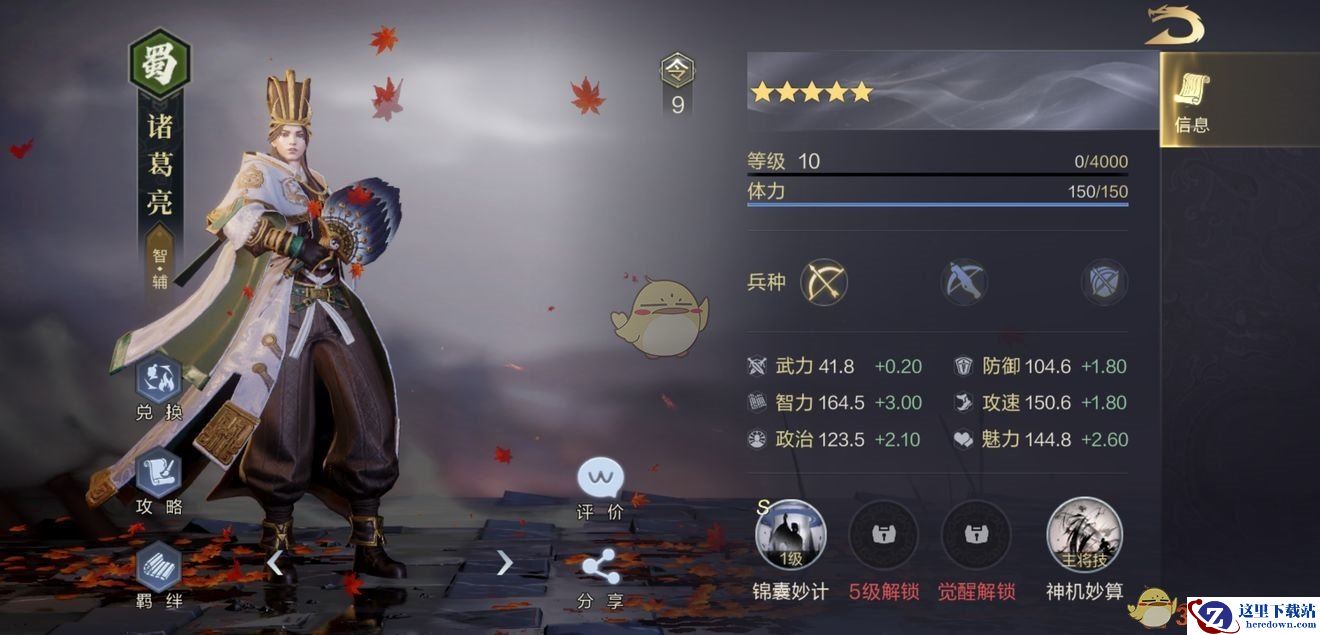 诸葛亮有着唯一全体主动战法释放概率增加,免疫一次战法的效果,可以说是鸿图之下的战法发动机,诸葛亮可以让主动队伍稳定性大大提高不过由于兵种限制,在配将方面还存在着一些不足。