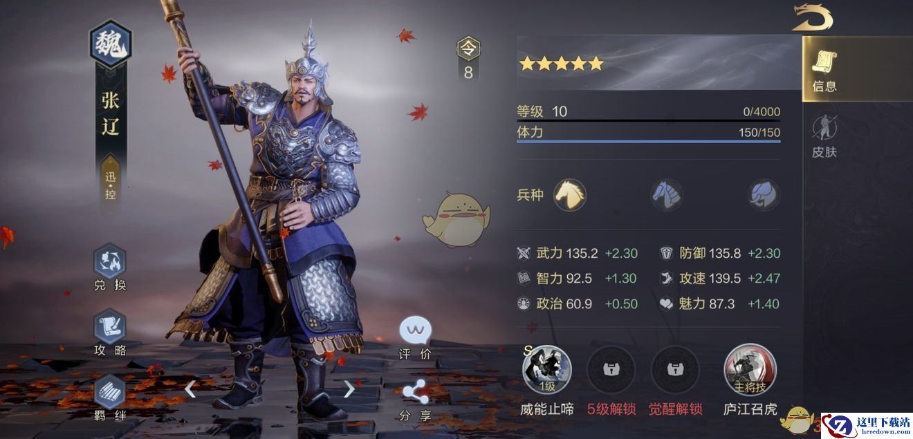 作为连击队的核心辅助自带战法选择2目标友军附加精准,增加20秒攻速,触发连击概率沉默可以说是连击队顶级的效果,不过张辽的稳定性有所欠缺。