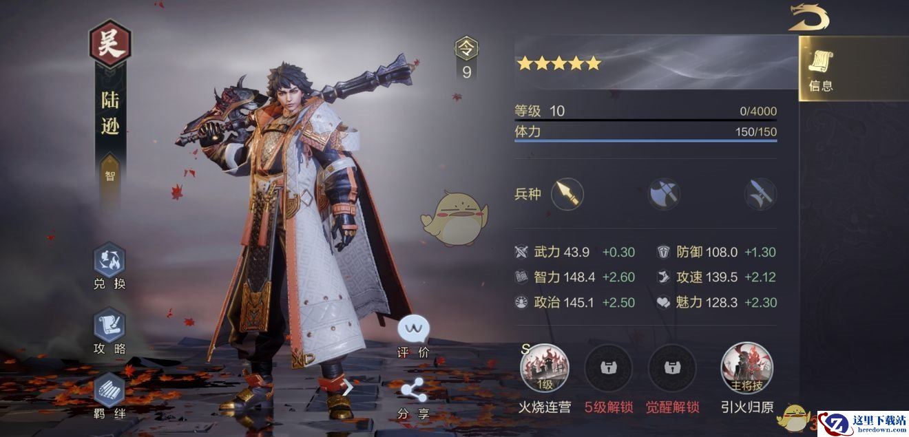 陆逊的战法机制让他在拥有风罡状态附加或在风天是有着整个游戏最高的输出上限,但陆逊的稳定性很低。