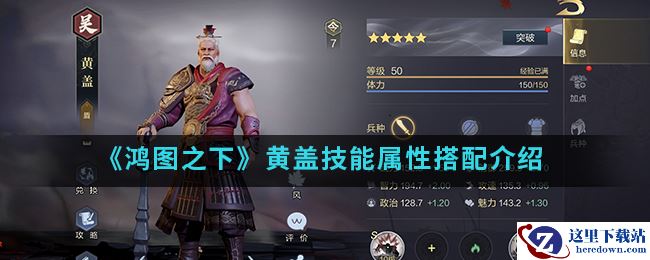 在鸿图之下手游中黄盖技能属性怎么样呢?黄盖,字公覆,三国时期孙吴势力下的名将。在三国题材最出名的演义故事中,他扮演忍辱负重的角色,被周瑜鞭打,假装怀恨在心向曹军告密。最终成功让曹军放松警惕,因为偷袭和火计在赤壁之战中败下阵来。这就是民间广为流传的“周瑜打黄盖”故事。那么想知道黄盖技能属性搭配的就跟随小编一起来看看吧。