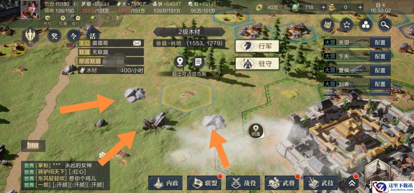 2、飞地不提倡,但是遇到自己主城附近都是其他联盟的人,而且自己经常受到攻击这种情况,可以和同联盟的玩家商量,在他附近占领一片资源点,攻占下来后直接把城迁过去。