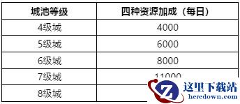 另外,不同等级的城池每天提供的资源也不一样,等级越高的城池每天产生的奖励也就越多。目前世界中的大城池最低4级,最高8级。