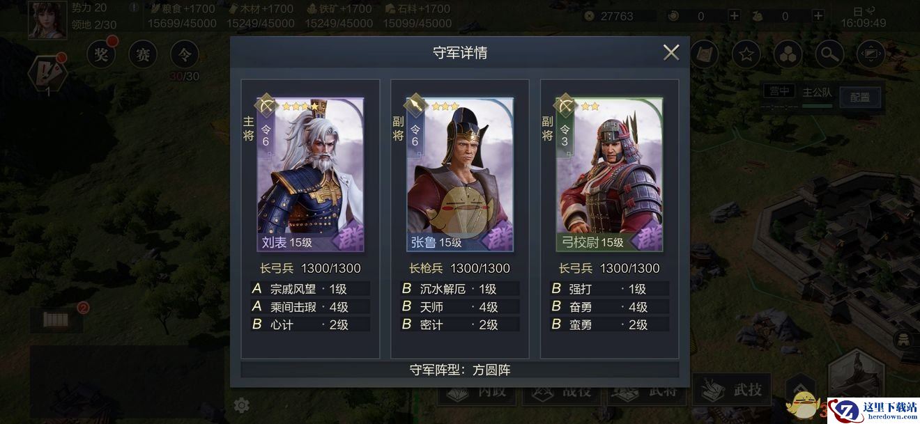 1~3级的资源守军非常简单,就算没有橙将、紫将,用蓝将就可以过。
