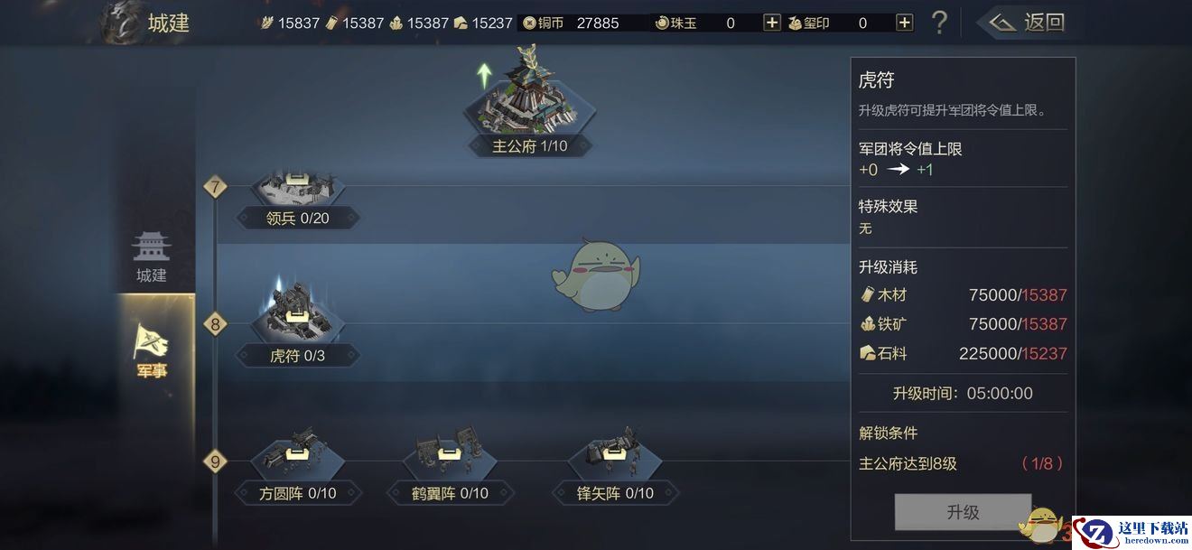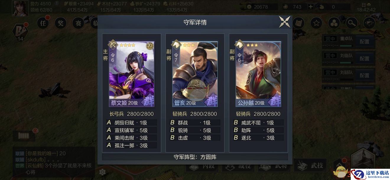 资源地的攻略绝对不是武将一味练级就可以的,军事科技也必须跟上,属性加成、升级领兵让武将能够拥有更多的兵力等等都要同步进行,特别是主公府和虎符,如果卡将领值,即使有理想的阵容也不能用。