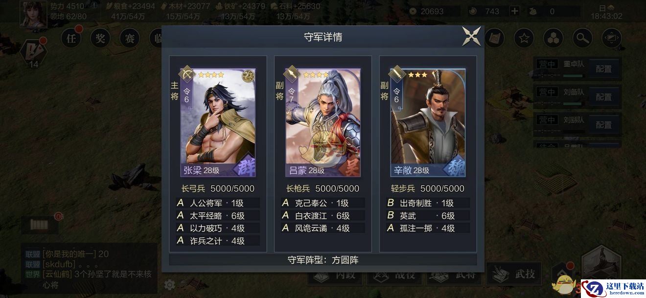 五级资源依然可以继续用主公+张梁+近战的阵容,主公的坦度还是很不错的,但后期比较乏力,如果有其他的橙将或者紫将塞进去带着练级,准备后期转型