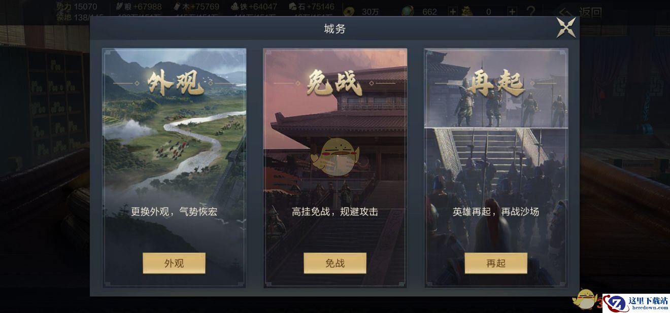 城务主要作用是用来免战、迁营以及更换外观的。免战准备时间为2.5小时,开启时长为6小时,但是开启后也会有6小时的冷却时间。如果利用好这个功能,卡准时间点,除了可以免战之外,还有可能绝地反击,给敌人带来重创。