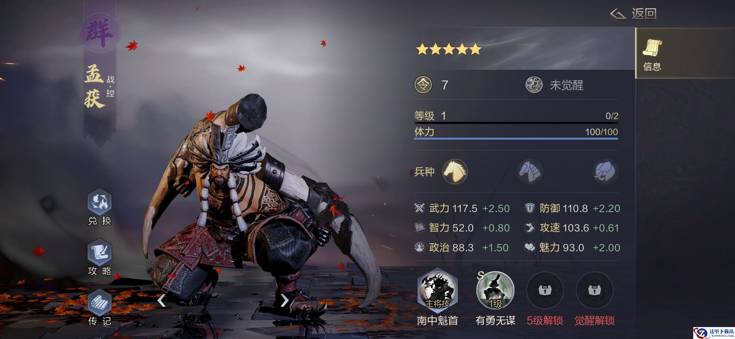 孟获也是目前比较冷门的名将,有勇无谋面对敌人也比较吃亏。