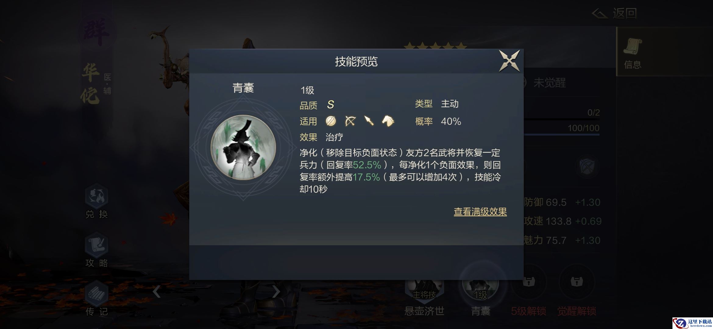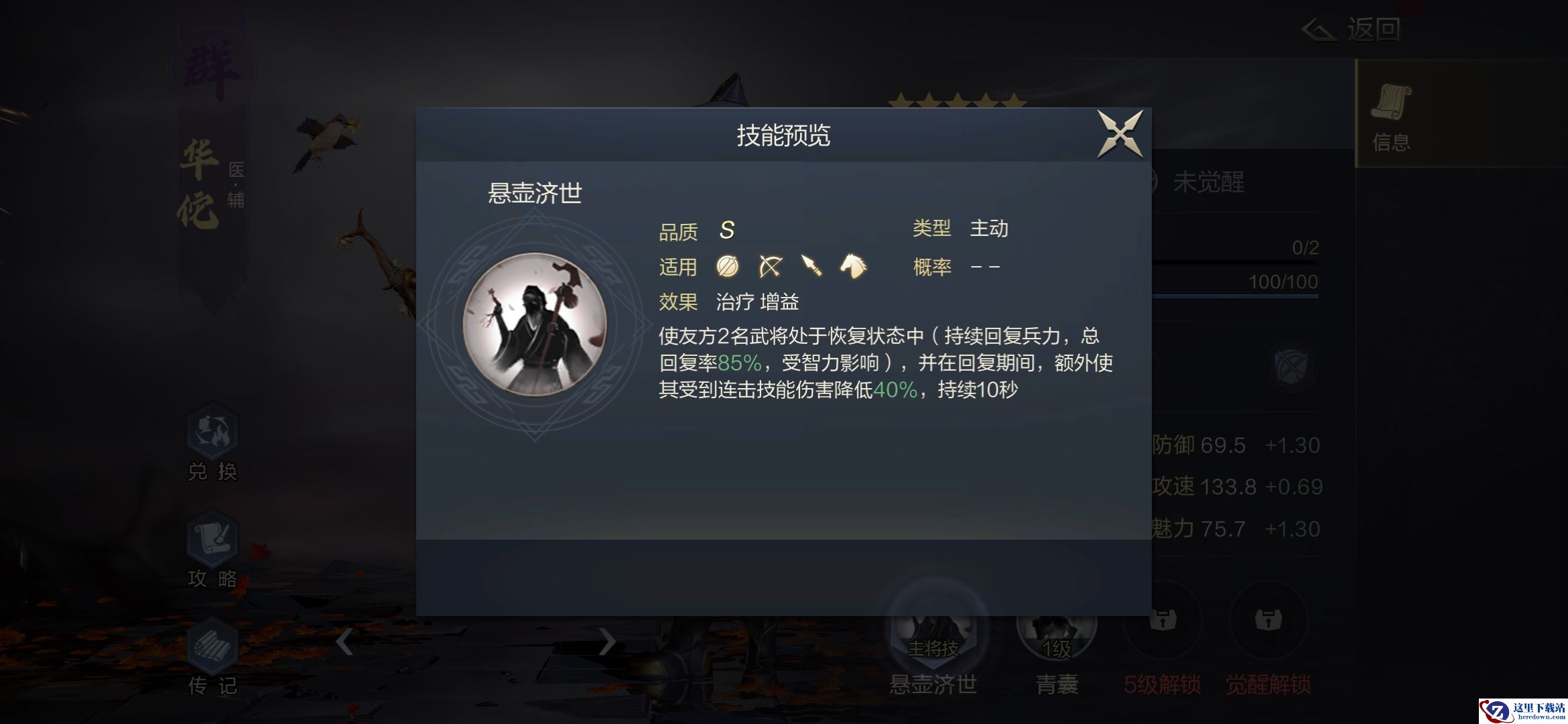 历史名医华佗,也是游戏中非常给力的奶妈,在PVP的表现比PVE更强,强大的治疗与消除负面让不少敌人的套路效果大减。