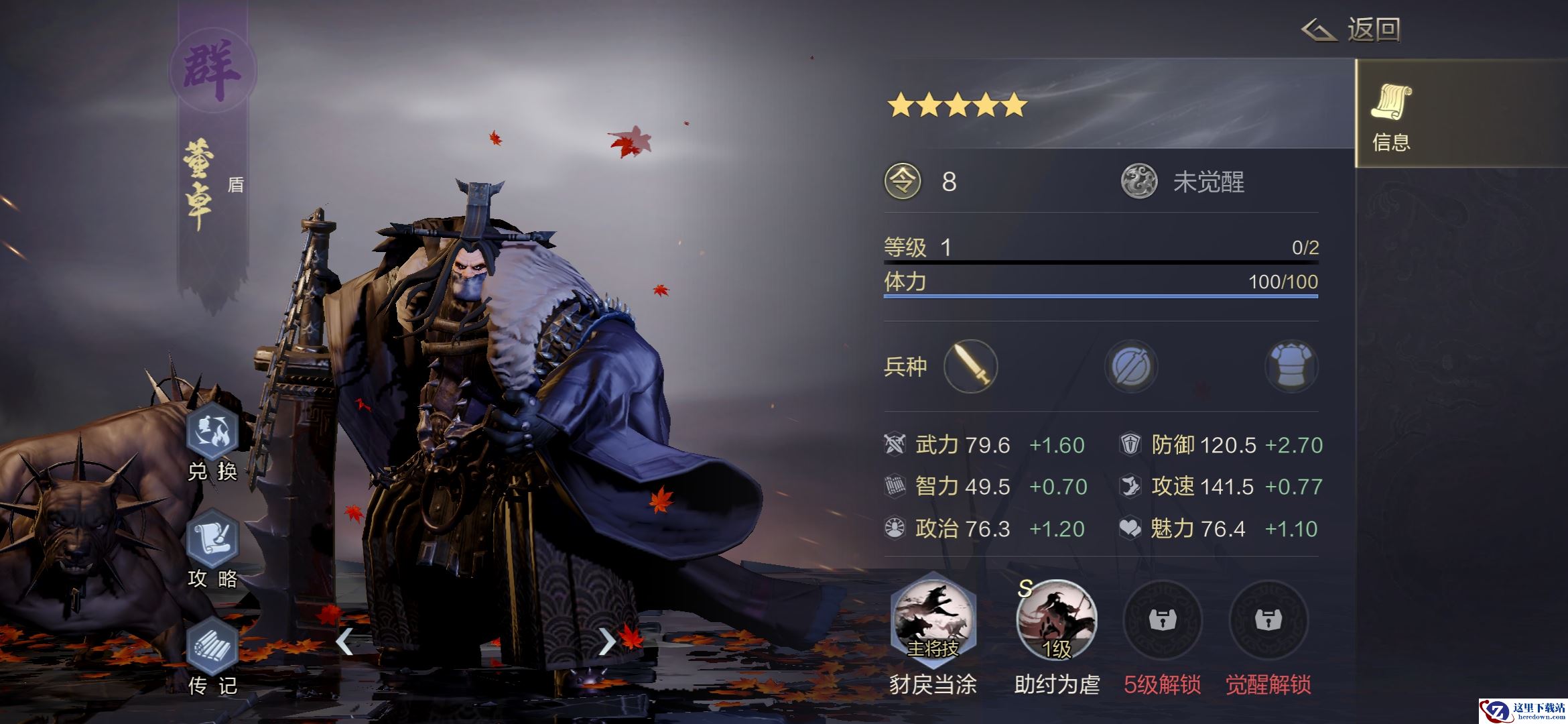 董卓,虽然在三国中名声不咋地,但其实力可谓是实打实的,主将的励军效果让其自身的输出与肉度结合,非常强力的菜刀队主将。