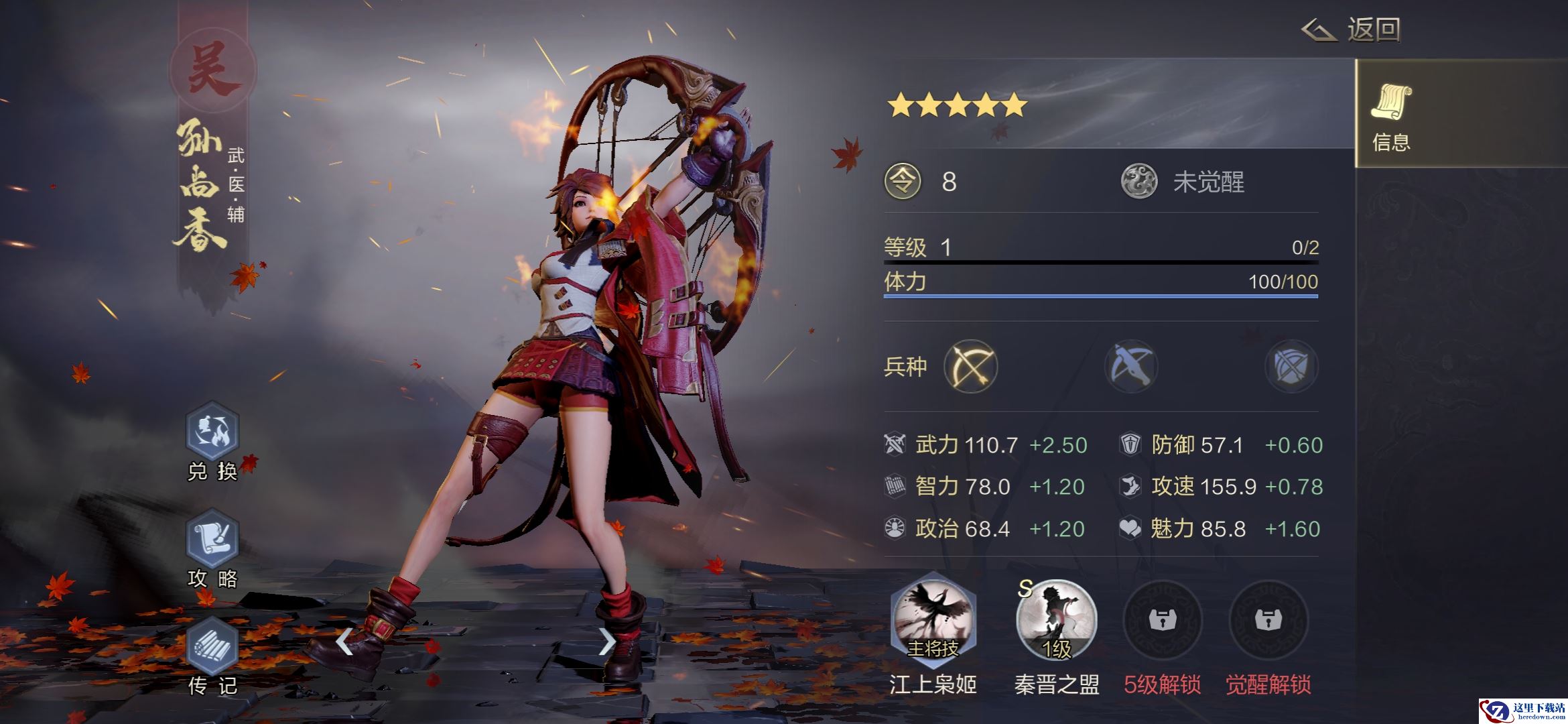 孙尚香,主将技要异性才能收益最大化,所以一般不当主将,适合在三孙阵容中担任辅助,有着辅助能力的孙尚香是吴国少有的优质治疗。