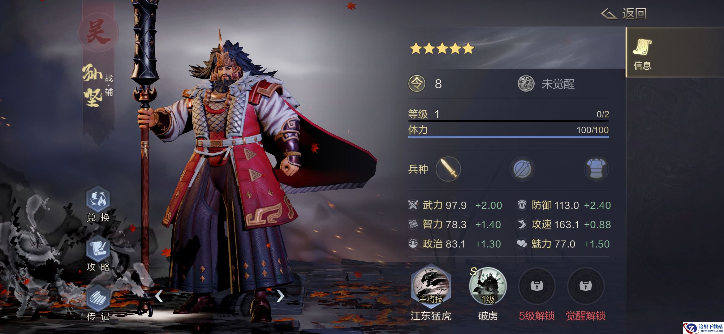 孙坚,三孙中适合主将的肉盾之一,技能也是连击为主,整体技能与羁绊还有闪避。