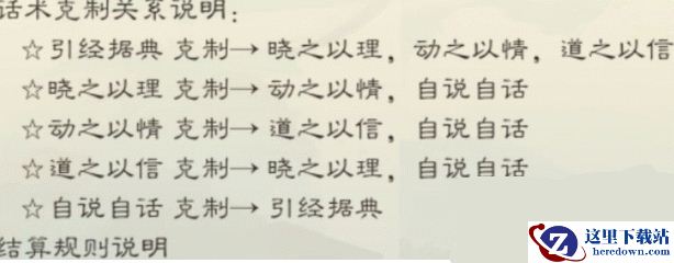各位可以这样理解,引经据典最大,谁都可以通吃,自说自话最小,谁都怕。其余三个就是循环克制。