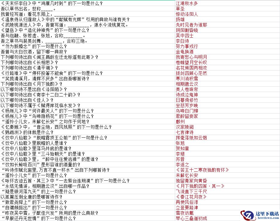 包括了贺知章所有联诗的上下句,还不清楚的朋友请参考下图。