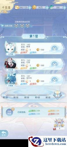 千珏塔共分为5层,掌门大人可根据自身实力进行攀登挑战,失败3次后当日挑战关闭。完成每日挑战,可获得“千珏令”、“善提心”、“念石”、“雍币”等丰富奖励,有助于提升刻印的灵海属性。每个挑战目标都有一定的亲和属性,与其相符的角色能够获得属性增幅,反之将被压制,所以掌门一定要选择属性相对应的刻印去挑战。