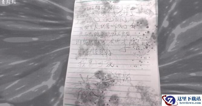 撕下来的作业本,写着字:太可怕了,太可怕了,我要死了,我要死了,我要被它们吃掉了,我跑不了,谁也跑不了,那不是人,我要吓死了,我走不动路了,我也喊不出声,谁能救救我,我叫李明,去告诉我妈,我想回家。下面还画了一个画,应该是他见到的东西。