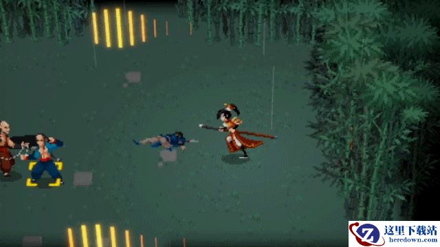 俯身向前,施展两段横砍。