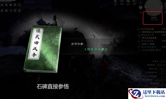 玩家可以在遥雪峰(912,1976)这个位置获取到惊武回风拳秘籍,在石碑直接参悟即可获得。