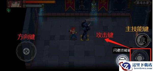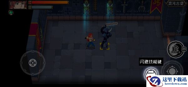 3、战斗场景中会出现文字指引,根据指引点击闪避技能键进行闪避