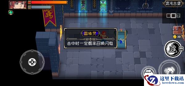 5、如被敌人打败,可无限复活直至打败敌人为止打败敌人后,控制人物移动到右边的房间获得【道具:雷精灵】