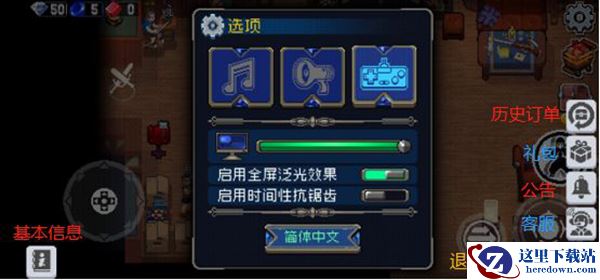 8、点击游戏页面右上角的齿轮按钮,进入【设置选项】页面