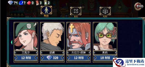 9、点击页面右侧的购物车按钮,进入【商店】,可购买角色、宝石、礼包