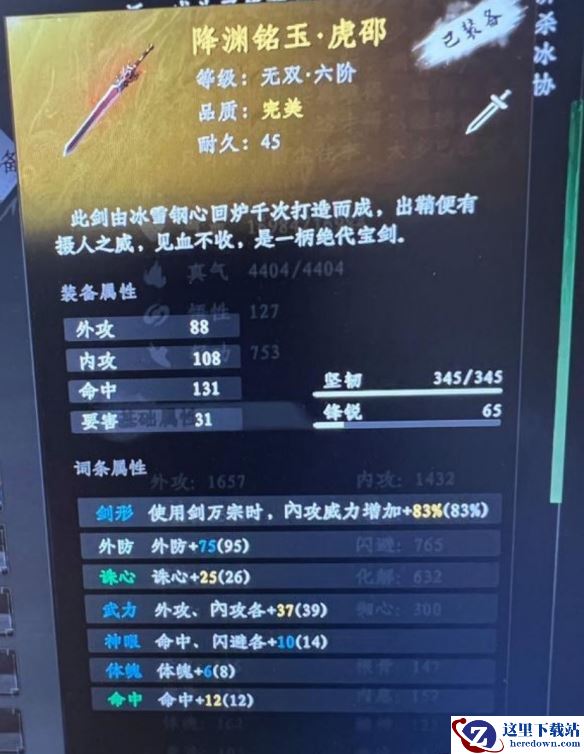 3. 洞里面有三个大宝箱,开启可以获得降渊铭玉·虎邵这把剑,玩家最好是轻功拉满再去这里。